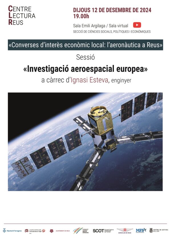 Dijous 12 de desembre, a les sales Emili Argilaga i virtual, «Converses d’interès econòmic local: l’aeronàutica a Reus»: conferència «Investigació aeroespacial europea», a càrrec d’Ignasi Esteva, enginyer.